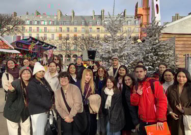 2025年12月10日、パリの当校のフランス語学校でA1およびA2レベルの成人学生たちが、首都の中心部で教育的な遠足に参加しました。フランス語を外国語として学ぶ(FLE)授業の延長として企画されたこの一日を通じて、学習者たちは文化的でお祭りのような環境の中でフランス語を実践しながら、パリの最も象徴的なランドマークのいくつかを発見することができました。