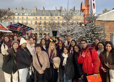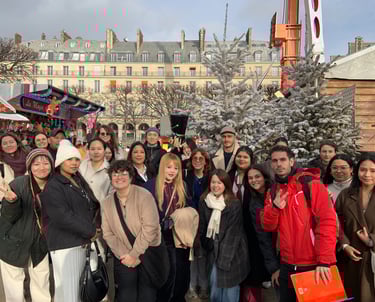 2025년 12월 10일, 파리에 위치한 성인을 위한 저희 프랑스어 학교의 A1 및 A2 레벨 학생들은 수도 중심부에서 교육 현장 학습에 참여했습니다. 프랑스어 외국어(FLE) 수업의 연장선으로 계획된 이 행사는 학생들이 문화적이고 축제 분위기 속에서 프랑스어를 실습하면서 파리의 가장 상징적인 랜드마크를 발견할 수 있는 기회를 제공했습니다.