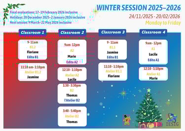 私たちは、あなたの卓越した語学の探求に喜んでお付き合いいたします。IESIG-FLEのコースカレンダーをご覧いただき、成功への準備を整え、語学学習という実りある冒険に飛び込んでください!